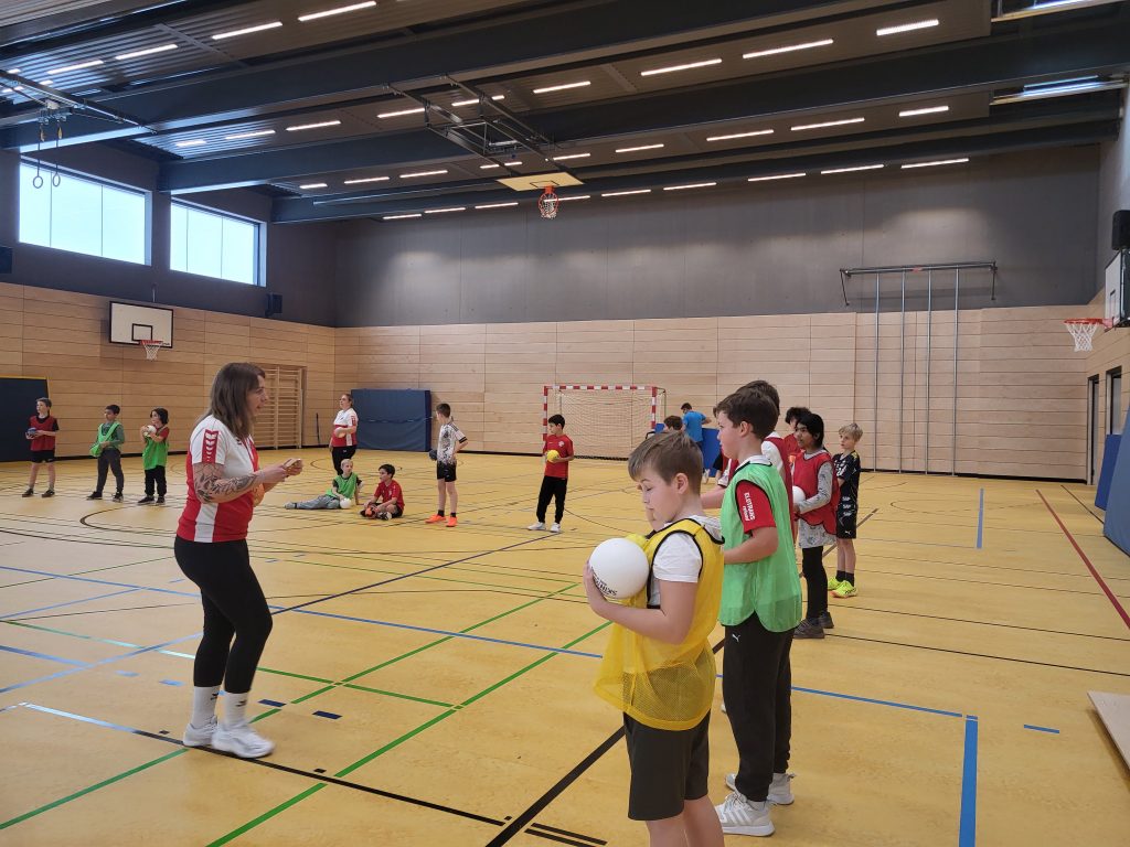 Am 24. Februar 2026 fand für den Jahrgang 4 der Astrid-Lindgren-Schule ein Handballaktionstag statt und zwar endlich einmal in unserer eigenen neuen Turnhalle. Unter der Anleitung eines Trainerteams der Usinger TSG hatten immer zwei Klassen die Möglichkeit, eine Doppelstunde in die Sportart Handball hinein zu schnuppern. Nach verschiedenen Geschicklichkeitsübungen mit dem Handball, Fang- und Wurfübungen wurden dann auch erste Torwürfe geübt. Abschließend fand dann ein richtiges kleines Handballspiel statt. Alle Kinder waren mit Elan und Begeisterung dabei. Vielen herzlichen Dank an das Trainerteam der Usinger TSG. Interessierte Kinder dürfen sehr gern ins Training kommen. Die Trainingszeiten finden sie auf dem Flyer.